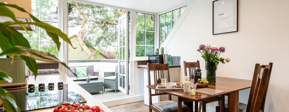 The spacious first-floor apartment offers a unique combination of a 3-bed apartment (for up to 6 guests) and 1 spacious ensuite double bedroom (for up to 2 guests) which includes tea and coffee making facilities.